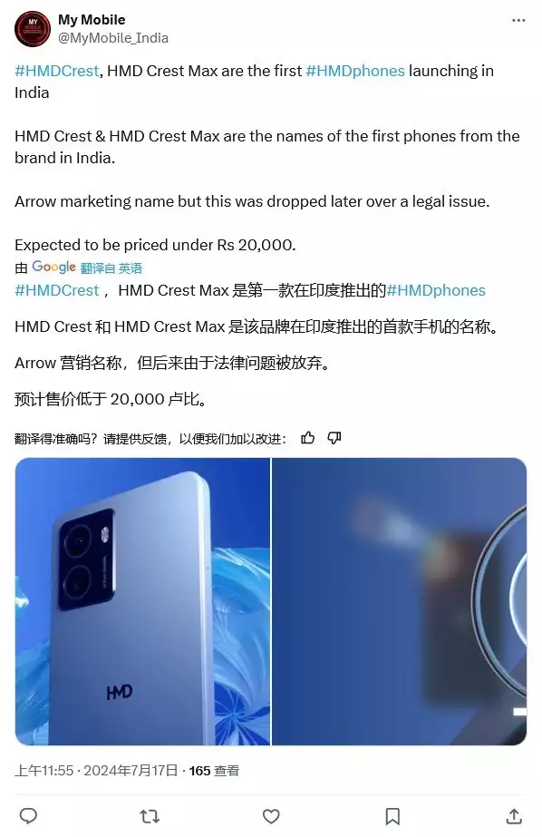 IT之家 7 月 23 日消息,HMD 公司今天启动产品预热,宣布将于 7 月 25 日在印度发布 Crest 系列手机,包括 HMD Crest 和 HMD Crest Max 两款机型。