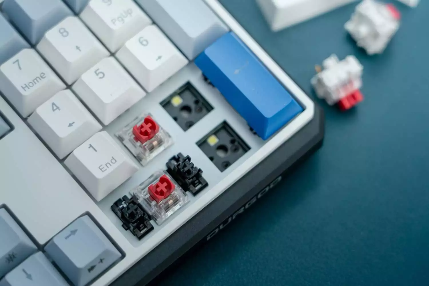 杜伽K610W采用多钟键轴,我选的这款是樱桃红轴。这是来自樱桃MX2A轴体,触发的行程为2mm,触发的力度为45cN。它内部含有6条肋骨强悍轴芯结构,并出厂有高品质的自动化精准润滑。以使得整体键轴的手感更加的线性,并且也更加的安静,手感相当的丝滑。