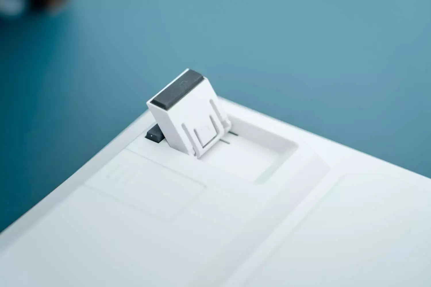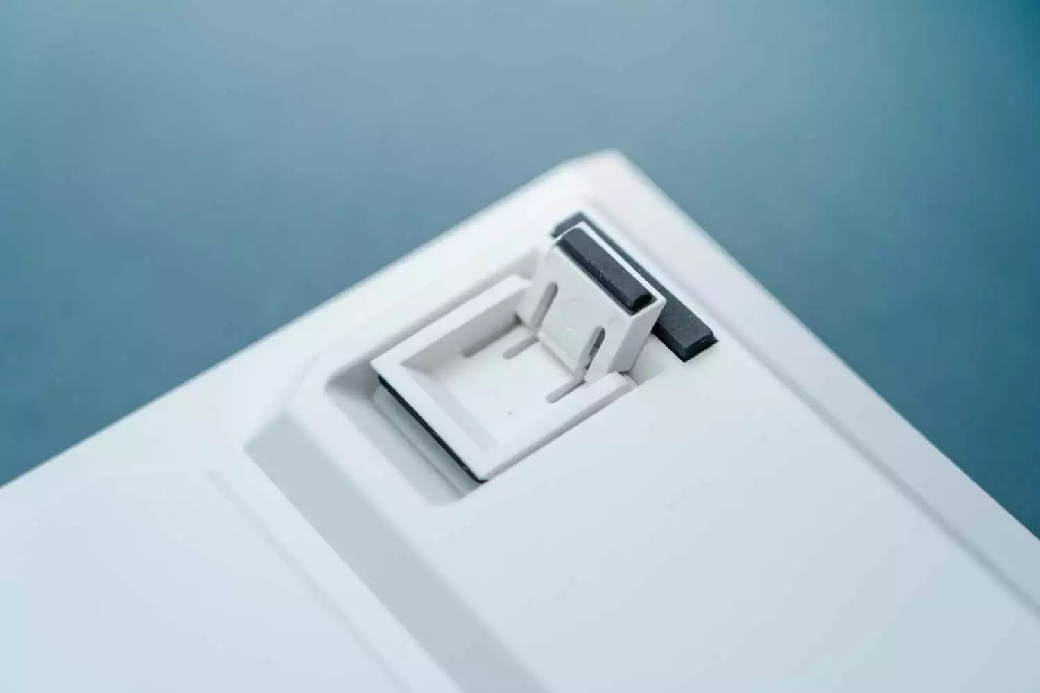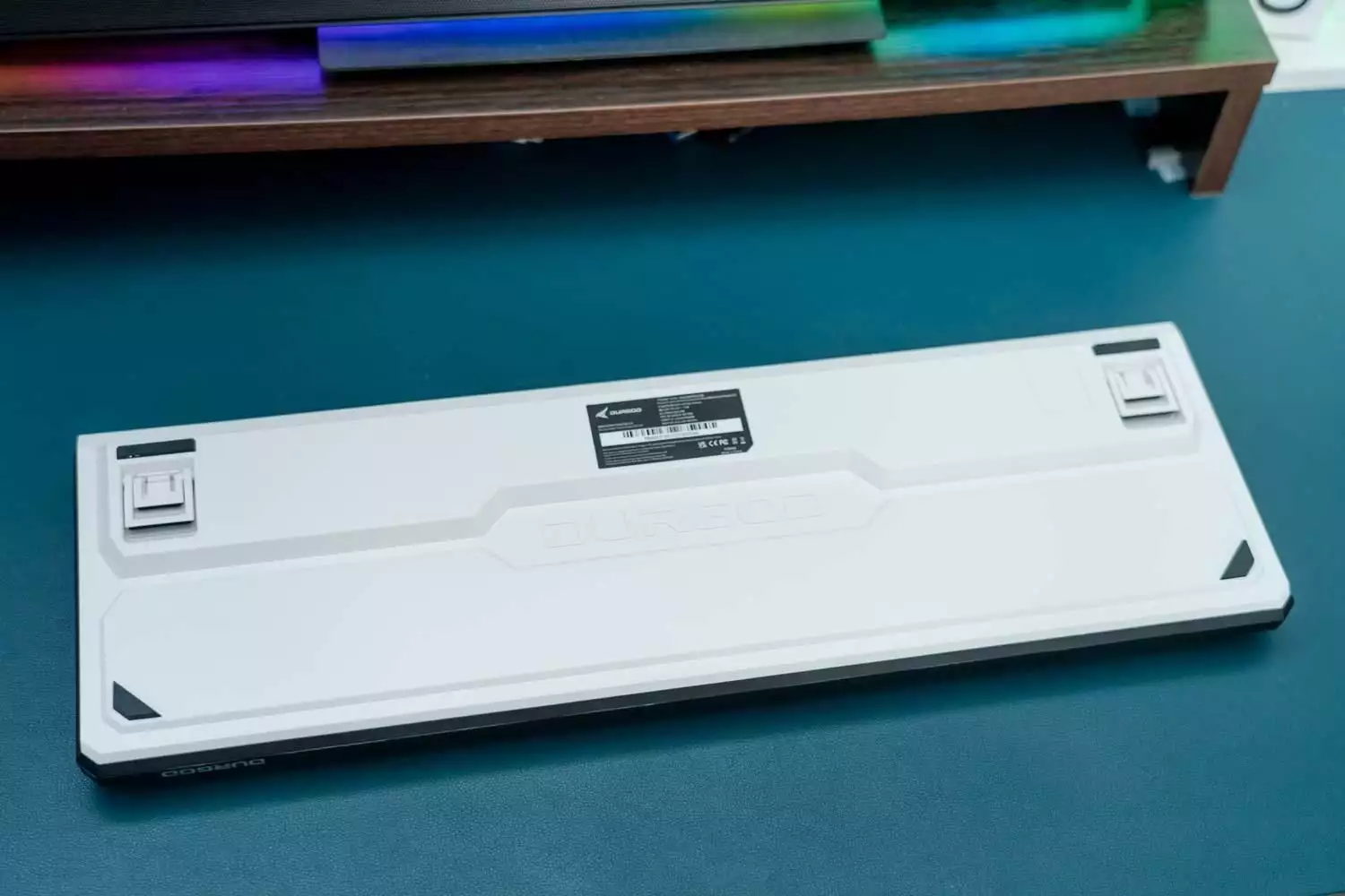 同时杜伽K610W还有两段式的站脚,不同高度的站脚可以让键盘拥有不同的人体工程学角度。