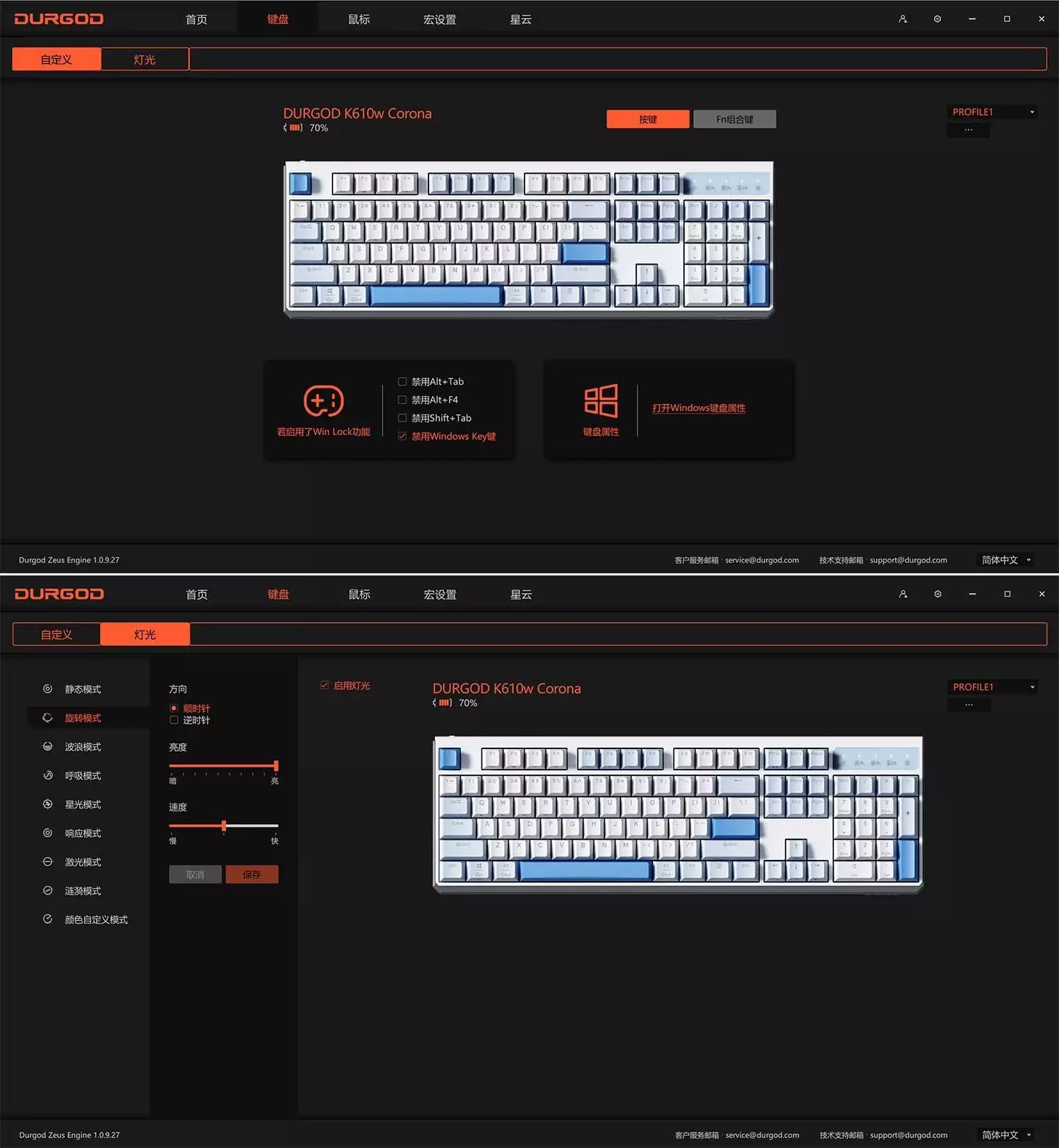 而且杜伽K610W还支持驱动,这样就如同开了外挂一般,不仅支持按键自定义,灯光自定义,而且还可以宏设置,一键开启大招,哪怕最复杂的游戏按键组合,也可以一键搞定。就这物理外挂在手,还怕技术太菜吗?