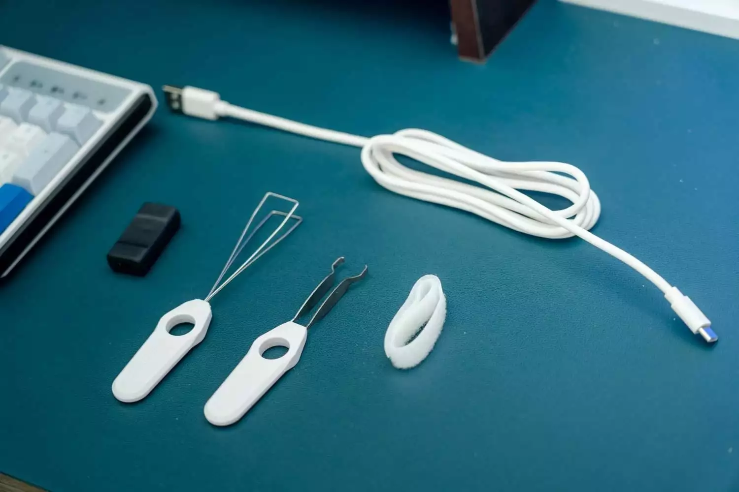 除了键盘外,杜伽还贴心的送了很多额外的小东西,如数据充电线,拔轴器和取帽器等。配件还是挺丰富的。