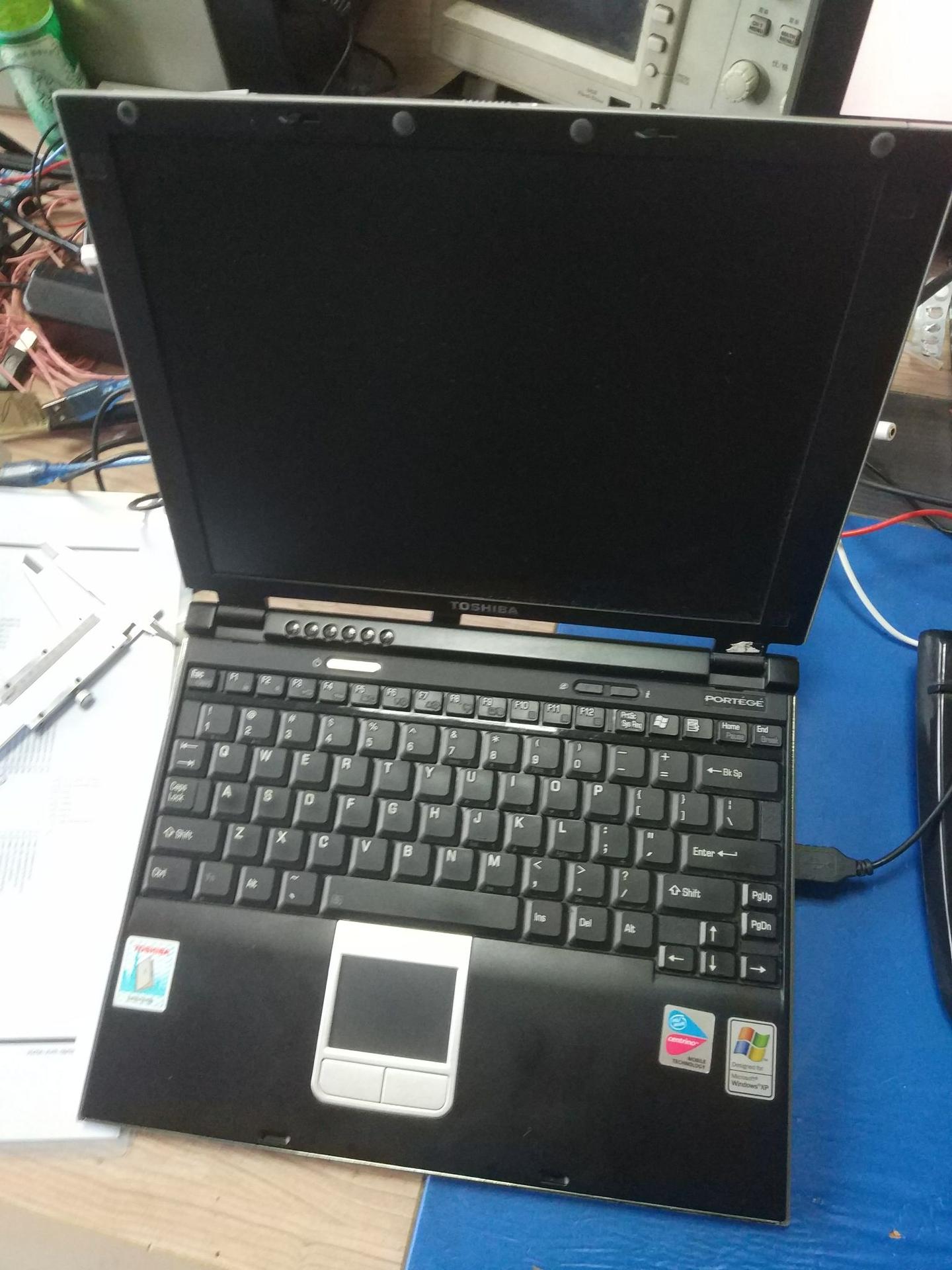 没改装过笔记本LED背光,怕改装不好,就先拿这台东芝SS1700练练手,这台是我80元收来的,成色一般,屏幕发黄,屏幕里面还有霉斑,收来后就一直扔在家里面!这本子