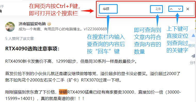 电脑端用户可以使用Ctrl+F,输入需要查看的关键字,即可直接搜索定位到需要查找的位置哦。例如需要查看“华硕”主板的配置,在搜索栏输入“华硕”即可查询到所有的位置。