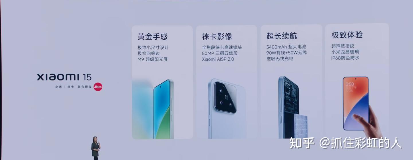 小米15配备一块6.36英寸1.5K四窄边直屏,采用独家定制的M9发光材料,边框窄至1.38mm,支持120Hz刷新率。