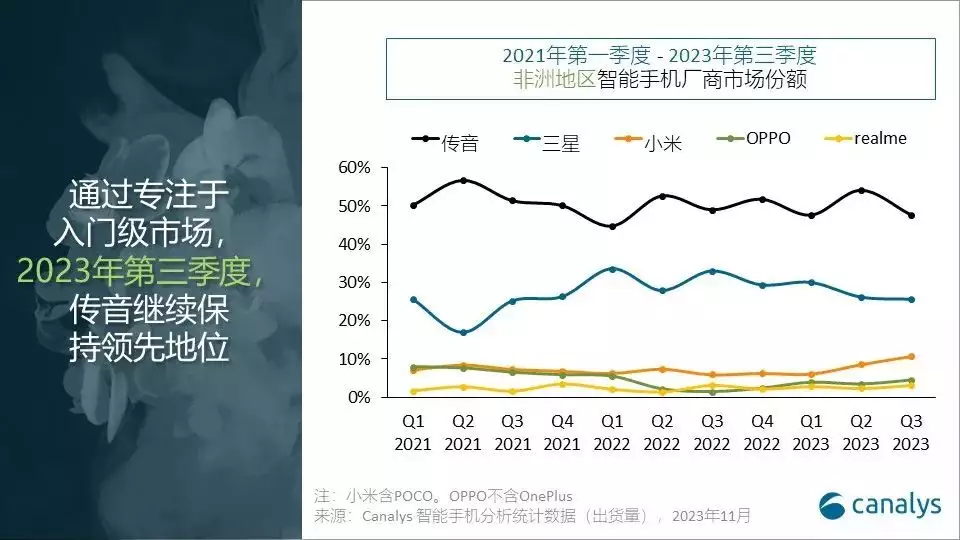 2023 年第三季度,非洲地区智能手机市场韧劲十足,在宏观经济波动的环境下仍增长 12%