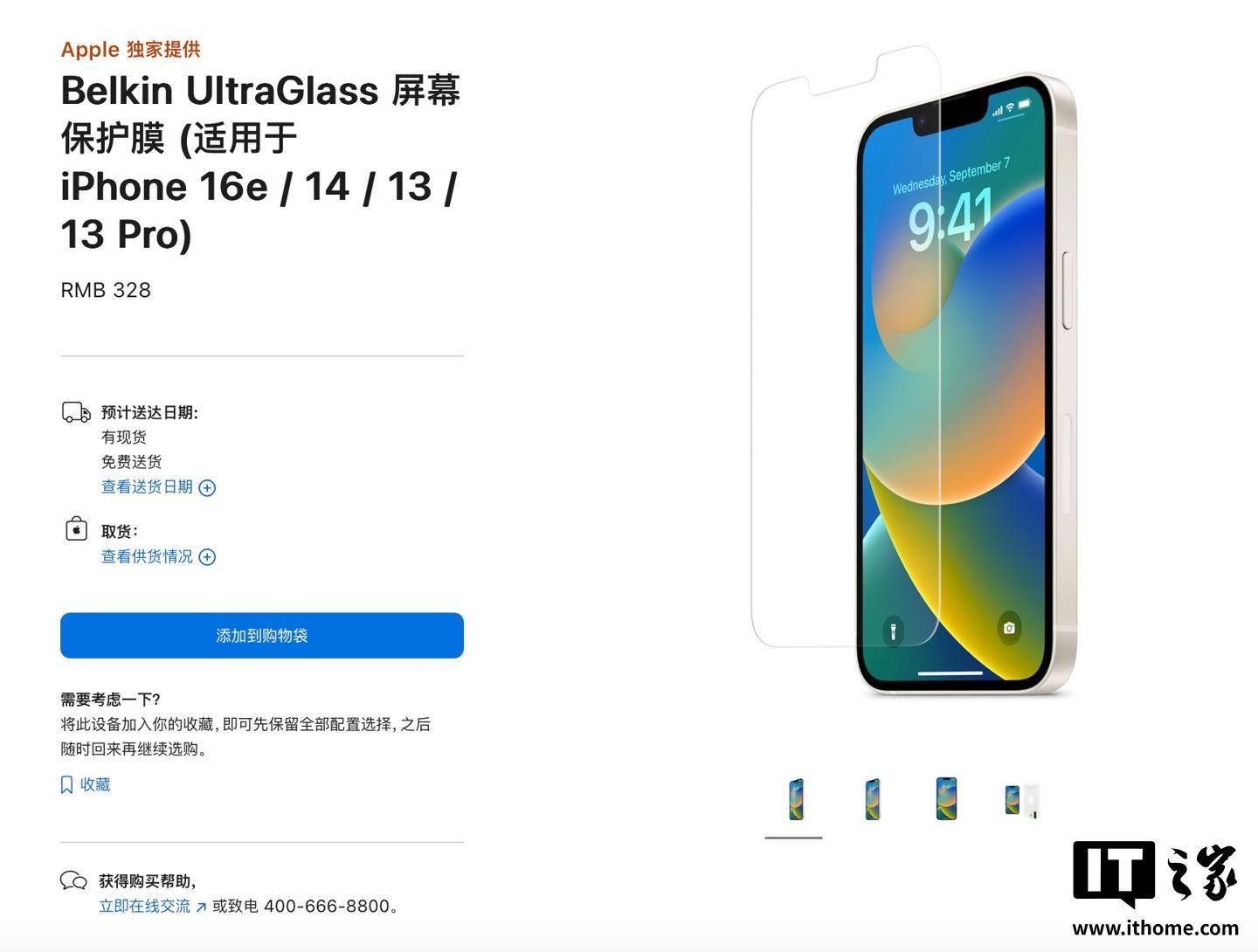 IT之家 3 月 7 日消息,贝尔金现已在苹果官网上架一款适用于苹果 iPhone 16e 手机的 UltraGlass 钢化膜(同时适用于 iPhone 13/14),单张钢化膜定价为 328 元。IT之家附商品页(点此访问)。