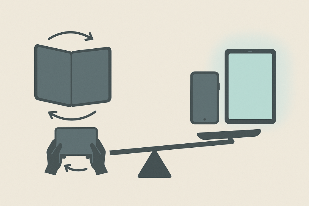 我们是随时会回着微信,再去看电影?还是随时会办公做 PPT 的同时打开小红书?轻量的场景跟沉浸式的场景本来就是有区分度的。而两台设备是最佳组合。正如我还有第三台设备——电纸书,作为沉浸式阅读和护眼的设备。既然不是高频切换,那场景区分,用设备来物理隔离,本就是最合理的。