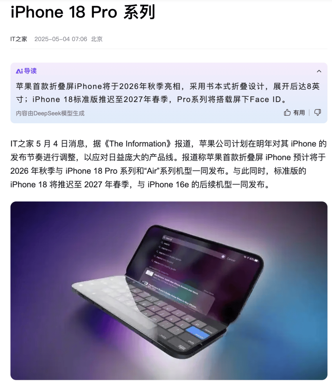 这倒并非是认为苹果推出折叠屏手机本身是一个错误的战略决策。恰恰相反,在当前的市场环境下,这或许是一个非常务实且可能成功的商业策略,甚至我自己也可能是苹果折叠屏的用户。