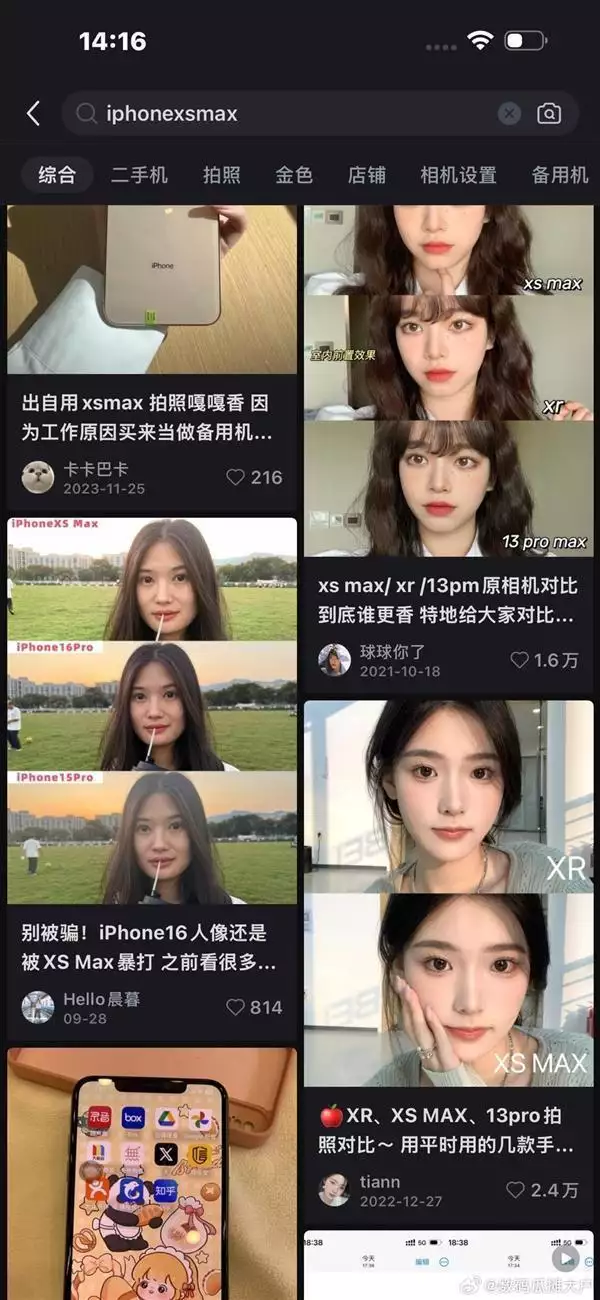 最近两年iPhone XS系列非常受女性用户喜爱,小红书有很多女生在用,主要是因为这一代还没加入Deep Fuison,拍摄的照片比较有朦胧感(糊),而且还支持LivePhoto,社交属性很强。