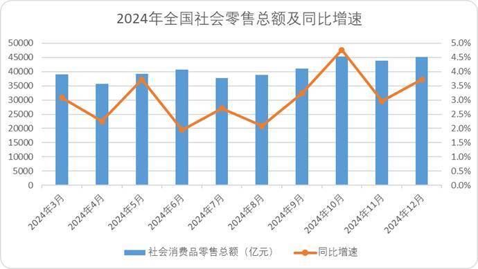 图:2024年全国社会零售商品总额及同比增速,来源:EPS宏观数据平台