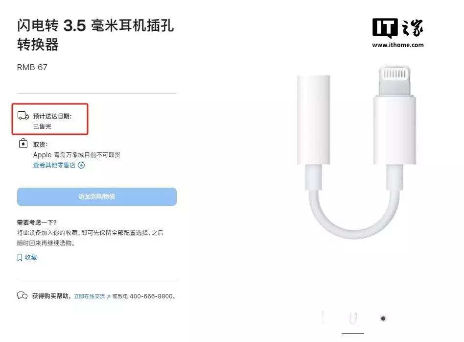 IT之家 11 月 18 日消息,苹果 Lightning(闪电)转 3.5mm 耳机转接头在中国、美国和全球许多国家的苹果在线商店已经售罄。据 MacRumors 报道,该配件仍可在一些国家(包括法国、丹麦、芬兰、挪威和瑞典)购买。