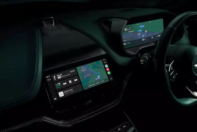 CarPlay Ultra是在原有Apple CarPlay系统基础上开发的新版本,阿斯顿马丁位于Gaydon的总部团队与Apple密切合作,以确保整合后系统界面能符合品牌的独特设计语言与美学理念。