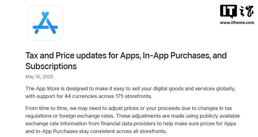 苹果建议开发者避免在 8 月 2 日至 8 月 4 日之间涨价