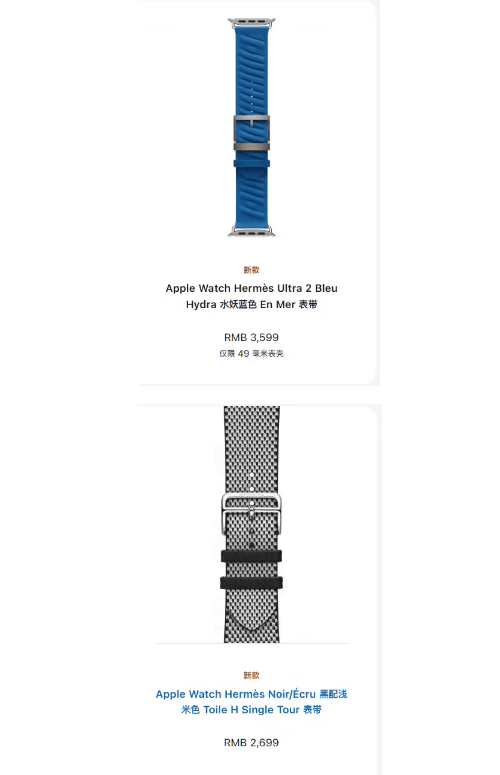 Apple Watch Hermès Ultra 2 Bleu Hydra En Mer 水妖蓝色表带:3599 元
