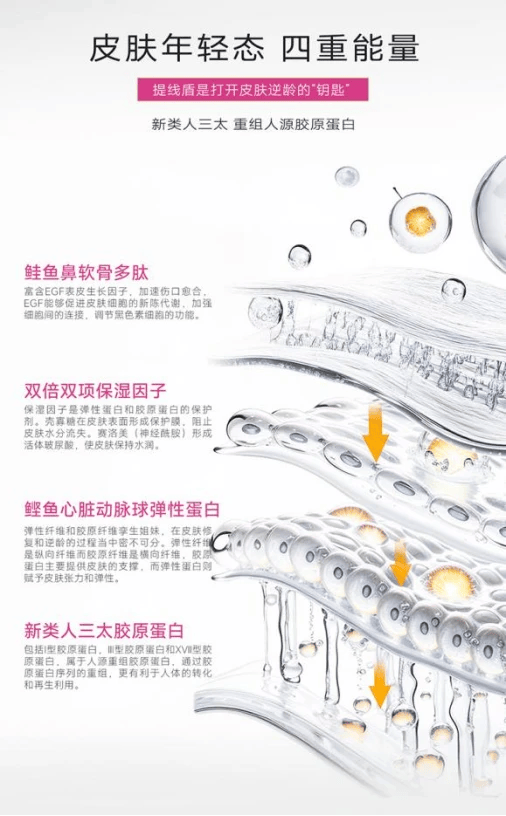 在医美手术后,肌肤对胶原蛋白的需求大幅增加,酪蛋白水解肽的补充能够满足这一需求,帮助肌肤更快地恢复弹性 。鲣鱼弹性蛋白肽则是恢复肌肤弹性的关键原料。在经历手术创伤后,肌肤的弹性纤维受到一定程度的损伤,导致肌肤弹性下降。鲣鱼弹性蛋白肽能够助力弹性纤维的俢复和再生,使肌肤重新恢复紧致有弹性的状态。它不仅能让皮肤更好地抵抗地心引力,减少松弛下垂的现象,还能提升肌肤的光泽度和质感,让肌肤看起来更加年轻健康 。这些成分相互协同,共同发挥作用,为术后肌肤的俢复和再生提供全方位的支持,让你在追求美丽的道路上更加自信。