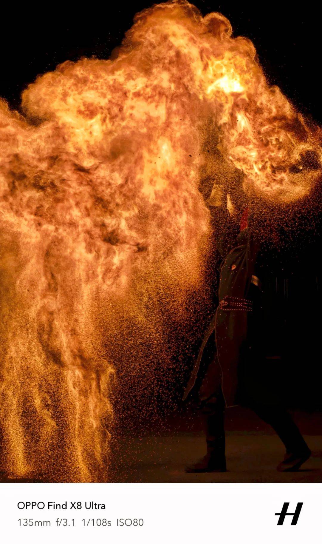 最后,其实火壶表演也适合做人像拍摄的背景,比如 OPPO 官方发布的明星李现的这张宣传照: