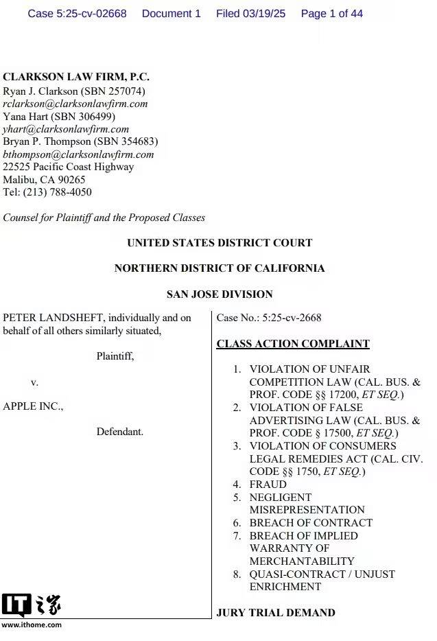 3 月 21 日消息,Axios 发现,苹果公司当地时间 19 日因「未能兑现 Apple Intelligence 承诺」而遭大量用户发起集体诉讼。