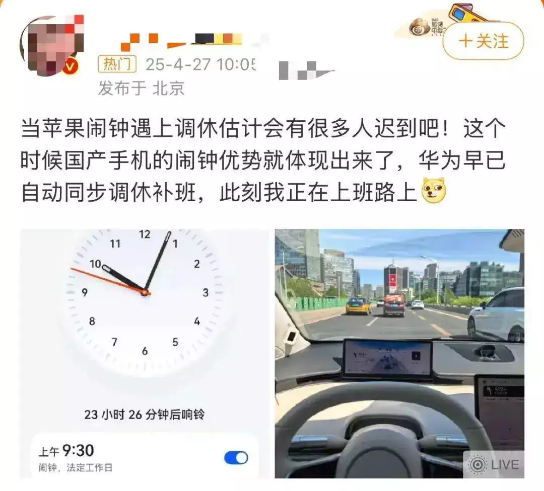 今天(4月27日),微博话题#调休##当苹果闹钟遇到调休#登上热搜榜,引发网友热议。