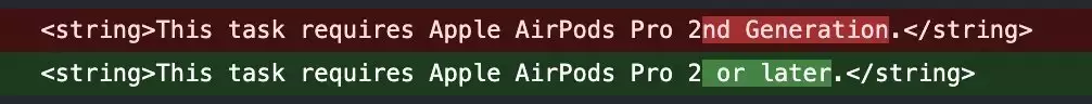 如图所示,苹果系统代码中原先标注的“AirPods Pro 2nd Generation”现改为“AirPods Pro 2 及更新型号”(IT之家注:这里似乎是某项功能的设备限制)。