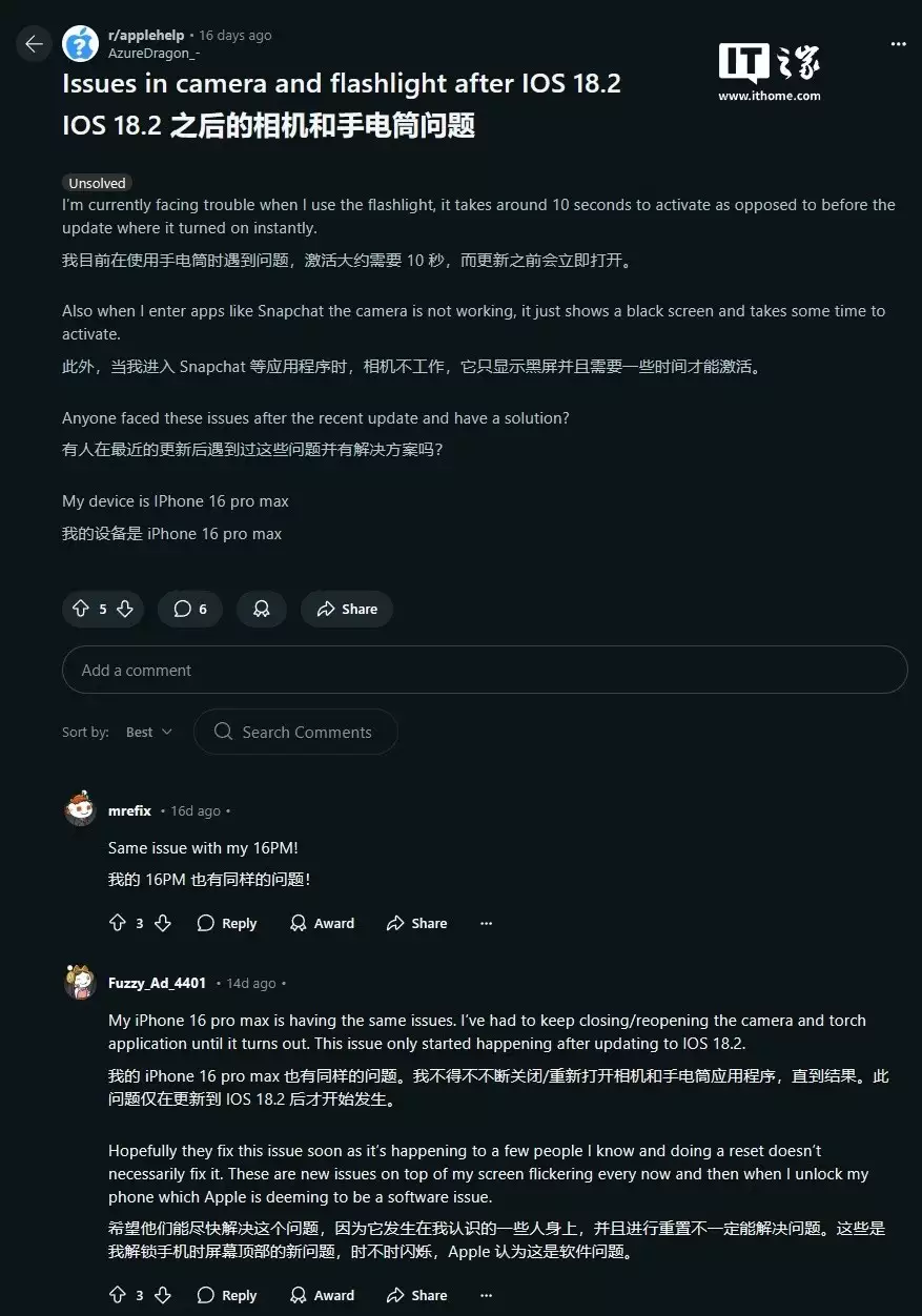 此外,手电筒功能也存在问题。部分用户反映,手电筒的开启存在显著延迟,有时甚至需要等待 10 秒才能点亮。一位用户表示:“更新后,手电筒的响应速度明显变慢,以前是瞬间点亮,现在却要等上好几秒。同时,打开 Snapchat 等应用时,相机也无法正常工作,屏幕一片漆黑,需要等待一段时间才能恢复。”