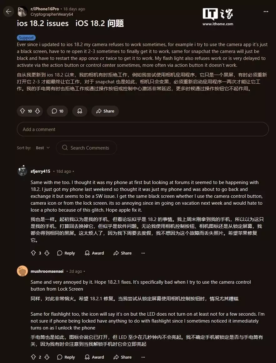 IT之家 1 月 5 日消息,苹果公司上个月发布了 iOS 18.2 系统更新,部分 iPhone 用户反映更新到新系统后相机和手电筒功能出现严重问题。