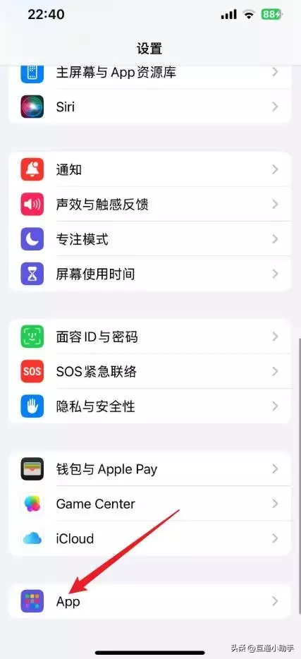 1、打开苹果手机,进入到设置页面,点击“APP”。