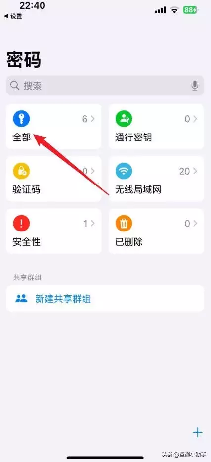 5、进入到密码页面,点击“全部”。