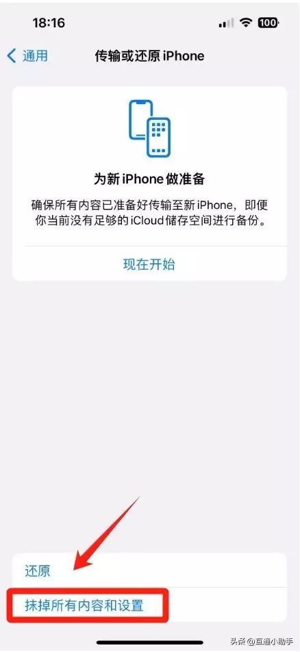 3、进入传输或还原iPhone界面,点击“抹掉所有内容和设置”。