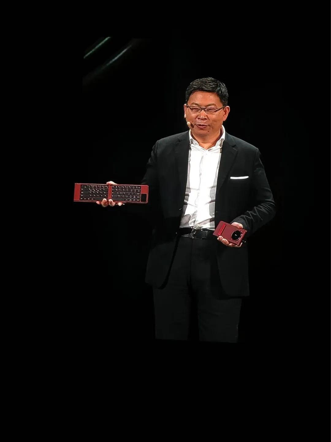 发布「华为Mate XT 非凡大师」三折叠手机的余承东讲述了很多与尺寸、铰链、厚度、材料有关的事情,声称它是目前全球最大、最薄的折叠屏手机,并且可以在单屏、双屏和三屏3种状态下使用,分别对应不同场景。在三屏全展开状态下,Mate XT的尺寸达到10.2英寸,比iPad mini(8.3英寸)还大。华为认为这样的三折叠手机可以代替部分场景对平板、笔记本电脑的需求。为了配合办公场景需求,华为本次还发布了一款折叠触控键盘,折叠后的大小和手机差不多。余承东称,和折叠键盘结合后,Mate XT将成为「装在口袋里的笔记本电脑」。