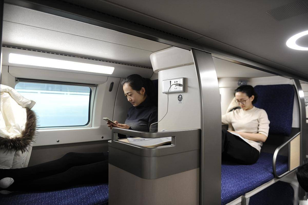 其他车型:像 CR200J “绿巨人” 复兴号动车组,二等座席的充电接口位于前排座椅下方,车厢中间桌板下方墙体设有 2 个带 USB 插口的五孔插座,残障人士座位处也均设有带 USB 插口的五孔插座。一等卧铺车厢包厢内每个铺位夜灯边均设有 2 个 USB 插口,过道设有 3 个五孔插座;二等卧铺车厢在每个铺位的阅读灯上都有 2 个 USB 充电接口,另外在小桌板下有一个五孔插座。