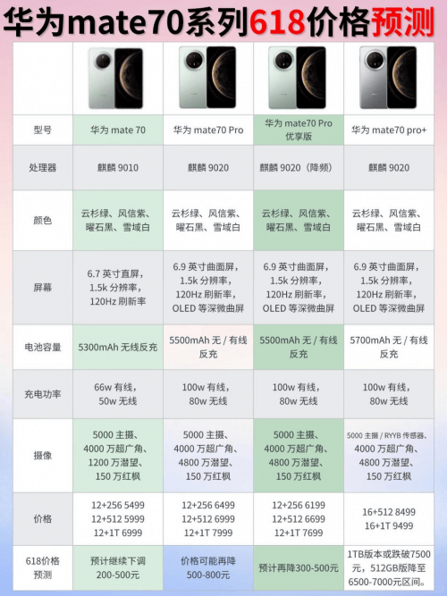 在5G时代全面来临之际,智能终端设备已成为现代人生活的必需品。作为国产手机品牌的代表,华为凭借其领先的影像系统、稳定的通信表现以及持续的科技创新,赢得了众多用户的青睐。每年一度的618年中大促,都是数码爱好者关注手机价格变动、寻找最佳入手时机的重要节点。那么,2025年618期间华为Mate70系列会有怎样的价格调整?华为各系列机型能优惠多少?让我们一起来详细分析。