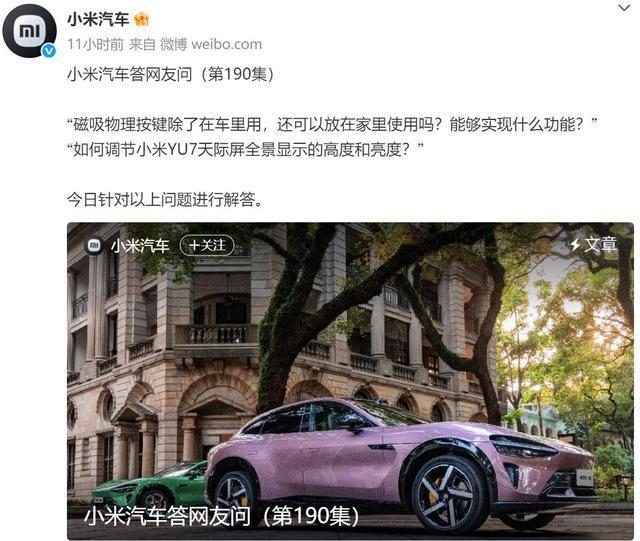 【环球网科技综合报道】8月6日消息,小米汽车日前在官方答网友问第 190 集中宣布,其磁吸物理按键已正式接入米家生态,并与其他米家产品实现互联互通。