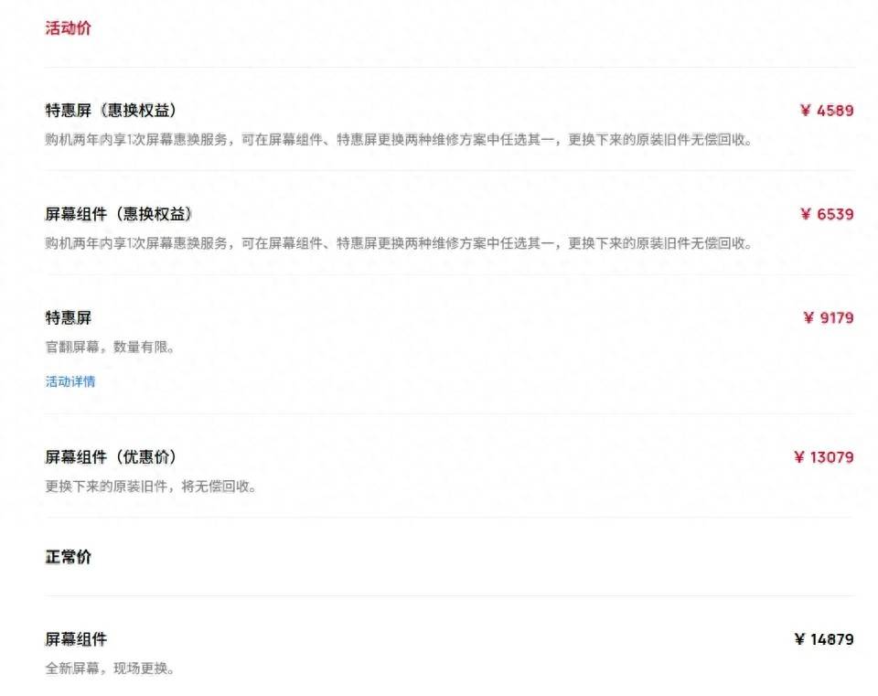 不过,华为也给出了一些优惠方案。若消费者愿意无偿回收更换下来的原装旧件,换屏费用可降至13079元;选择更换官翻的特惠屏,则只需9197元。而且,在购机两年内,消费者还能享受1次屏幕惠换服务,此时更换全新屏幕价格为6539元,更换特惠屏为4589元,只是旧件同样需无偿回收。