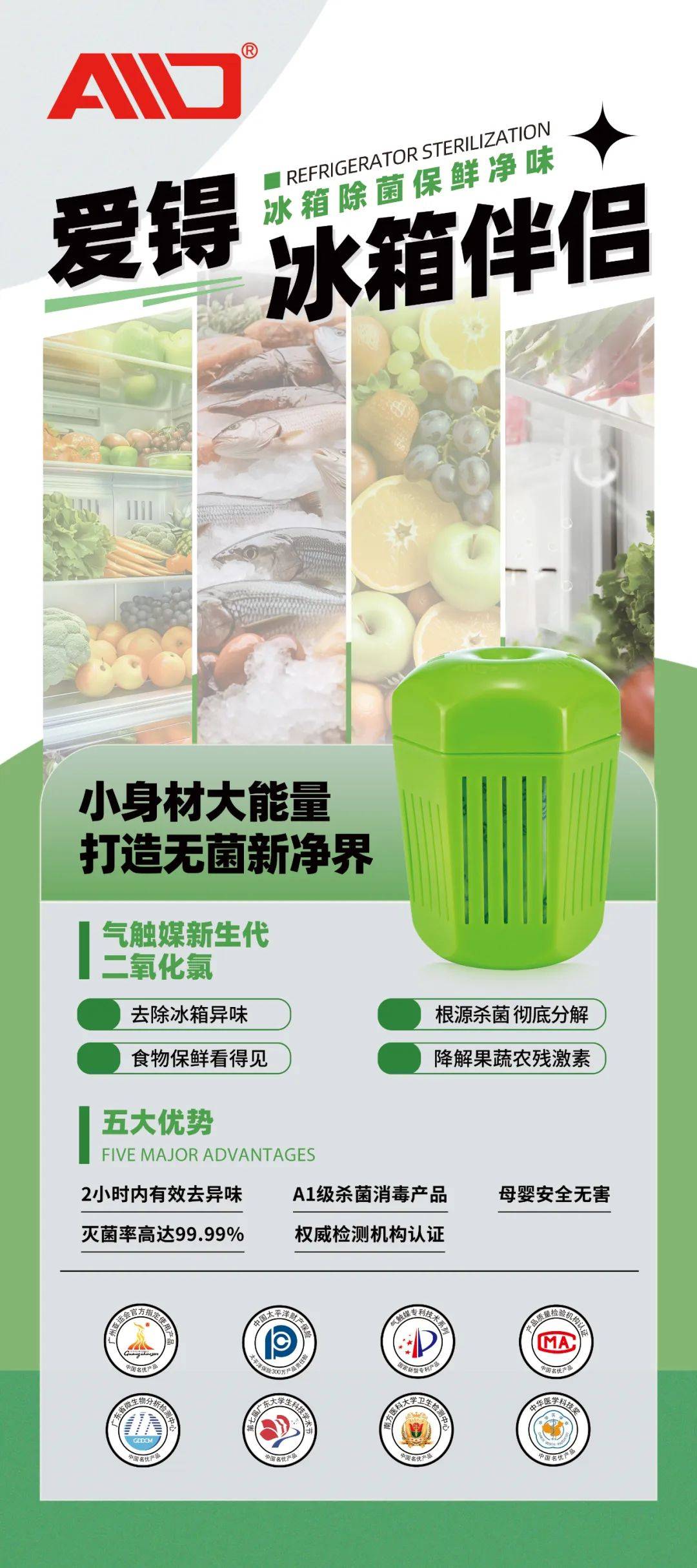 爱锝君建议:每月用爱锝物体表面全位消(爱锝二氧化氯消毒片)对冰箱擦洗,做完消毒杀菌祛味后,在冰箱里放入爱锝冰箱伴侣,这样,冰箱里就很卫生了,我们便可以放心使用。