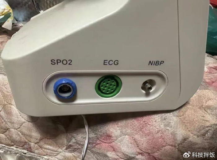 左侧同样离谱,有SPO2、ECG和NIBP接口,其中NIBP口是接测血压的设备,而SPO2是指血氧饱和度,明显是测血氧的,而ECG是心电图的意思,明显是测心率的。