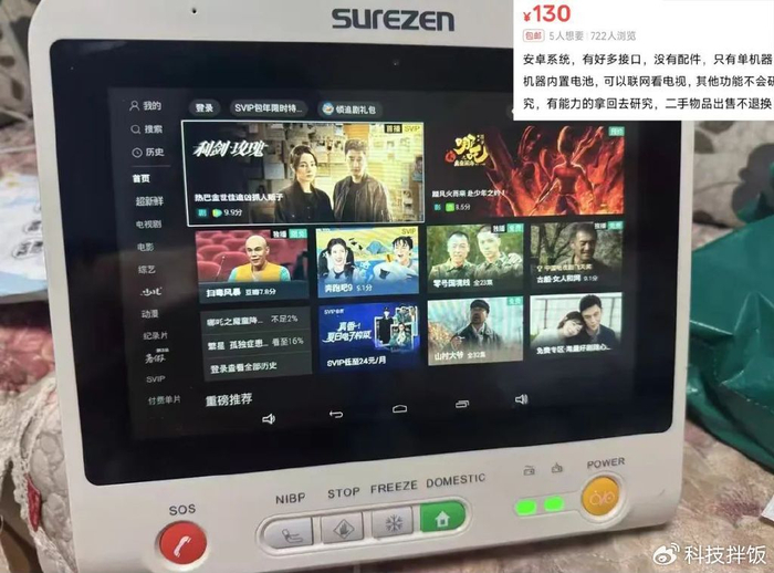 关键是屏幕下方还有NIBP等按键,我查了一下NIBP是“自动化无创性测压法”的意思,这玩意大概率就是医疗设备啊,看造型我咋觉得是ICU房间的那种心率机?感觉在电影里看过。