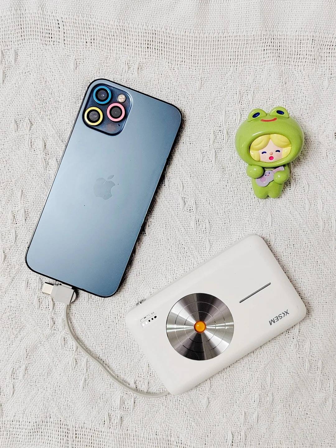 西圣无线磁吸充电宝在外观设计上也非常人性化,厚度仅有18.5mm的超薄机身设计,重量仅有204g,只手可握,拿在手上充电,也不会觉得有重量感。将它贴住手机背面充电使用的同时也并不会遮挡摄像头模组,完全不影响各种场景下手机的正常使用。