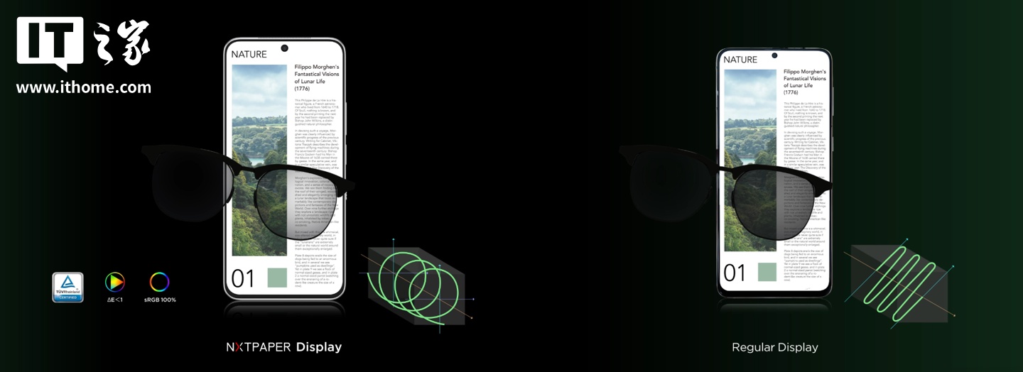 IT之家从 TCL 官网介绍获悉,该屏幕可模拟自然光线,缓解视觉疲劳,支持 100% sRGB 色域、ΔE<1、无频闪、低蓝光,以及自适应亮度和自适应色温,亮度最低 2 尼特。