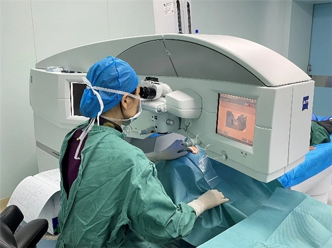 说到做手术,很多人第一反应可能是许多医生护士在手术室里手忙脚乱的场景,术后还要躺床上休养很多天。但实际上,相比印象中的“大手术”,近视手术更像是个“小工程”。第一天术前检查,第二天进行手术,术前会滴入带有麻醉效果的眼药水,术中激光过程仅几十秒,全程无痛,部分患者可能会短暂出现流泪或有异物感,但都在可以忍受的范围内,术后几小时也会慢慢消失,第三天复查就可拥有清晰视力。