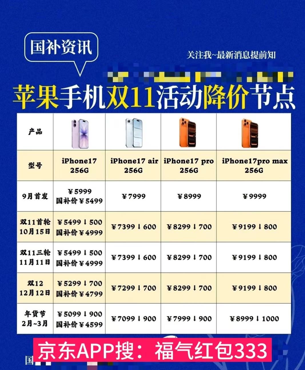 注意:iPhone 17 Pro因定价超6000元无法享受国家补贴,但平台优惠已足够“狠”。