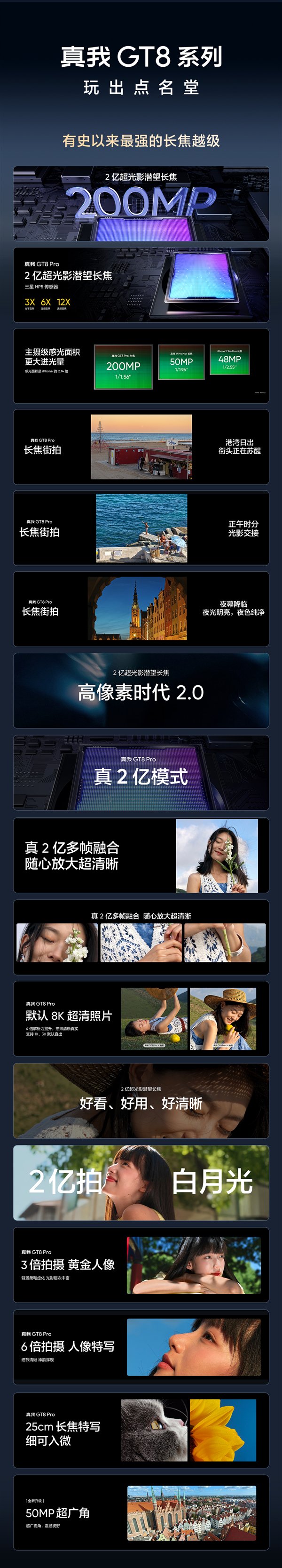 快科技10月21日消息,真我GT8 Pro作为影像旗舰,除了理光GR防眩光主摄之外,还搭载了三星HP5 2亿像素传感器作为潜望长焦。