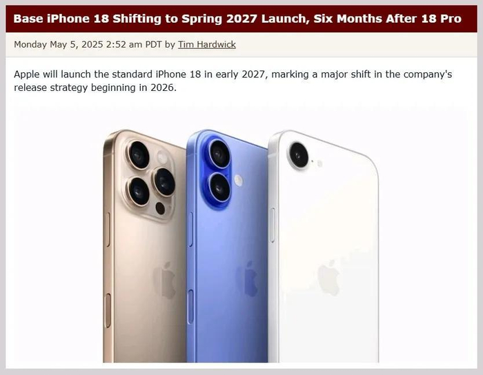 这也意味着,明年亮相的只有A20 Pro芯片,标准版机型所搭载的A20芯片,则要延迟到2027年才推出。