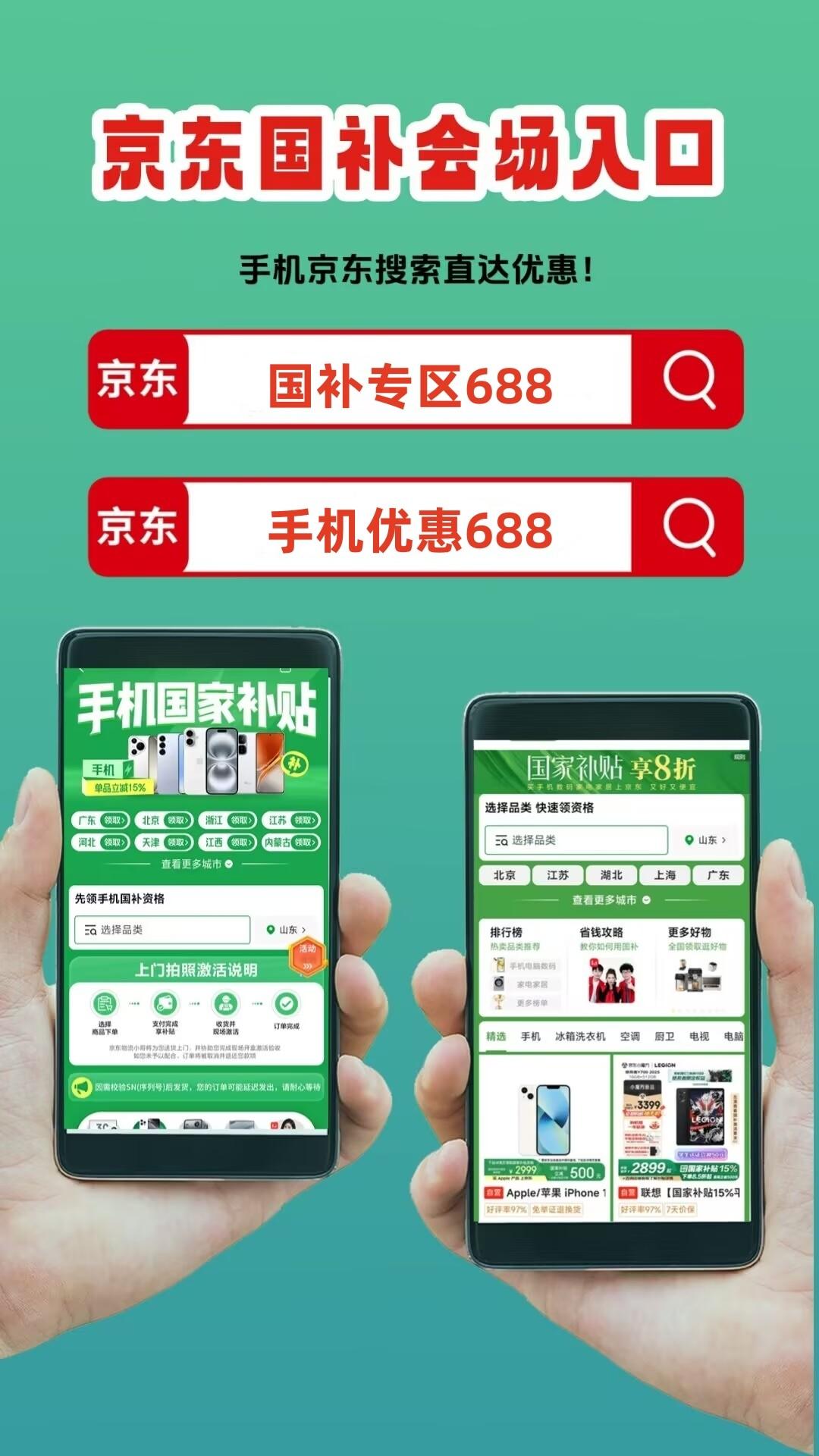 手机数码国补资格的领取方法入口是:京东APP搜「手机优惠688」或「苹果优惠799」最高补贴500元。