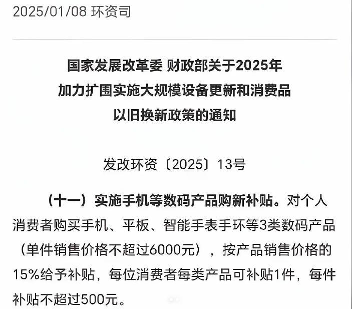 新能源汽车补贴延续:财政部发布的最新通知确认,2025年新能源汽车补贴总额为98.9亿元,继续支持全国多个地区的新能源汽车推广应用和燃料电池汽车示范应用。家电以旧换新补贴延续:部分地方政府已表示将延长补贴期限至2025年2月28日,预计本轮旨在促进家电更新换代和消费增长的措施,可能延续至2027年。国补政策方向的调整:2025年国补政策将继续存在,但具体的形式和范围可能会有所调整。例如,新能源汽车的补贴力度可能会进一步退坡,而对于一些发展较快、规模较大的品牌,补贴可能会有所上涨。⭐各地区手机国补政策及补充: