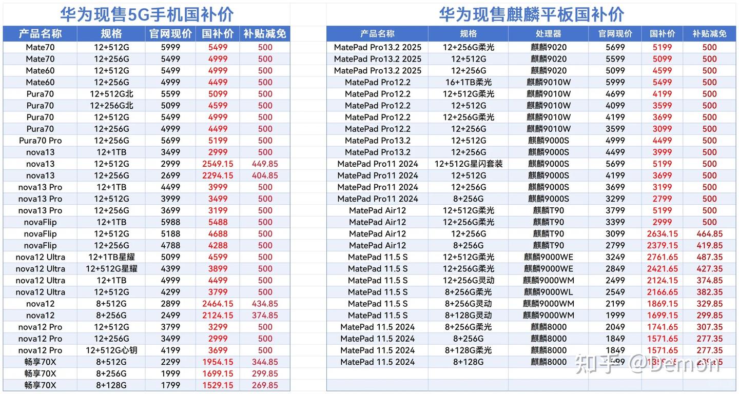 华为手机作为国产手机的领军品牌,此次国家补贴政策涵盖了其多个系列的热门机型,具体如下: