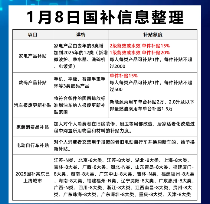 ❗❗1月20日国补最新政策更新: