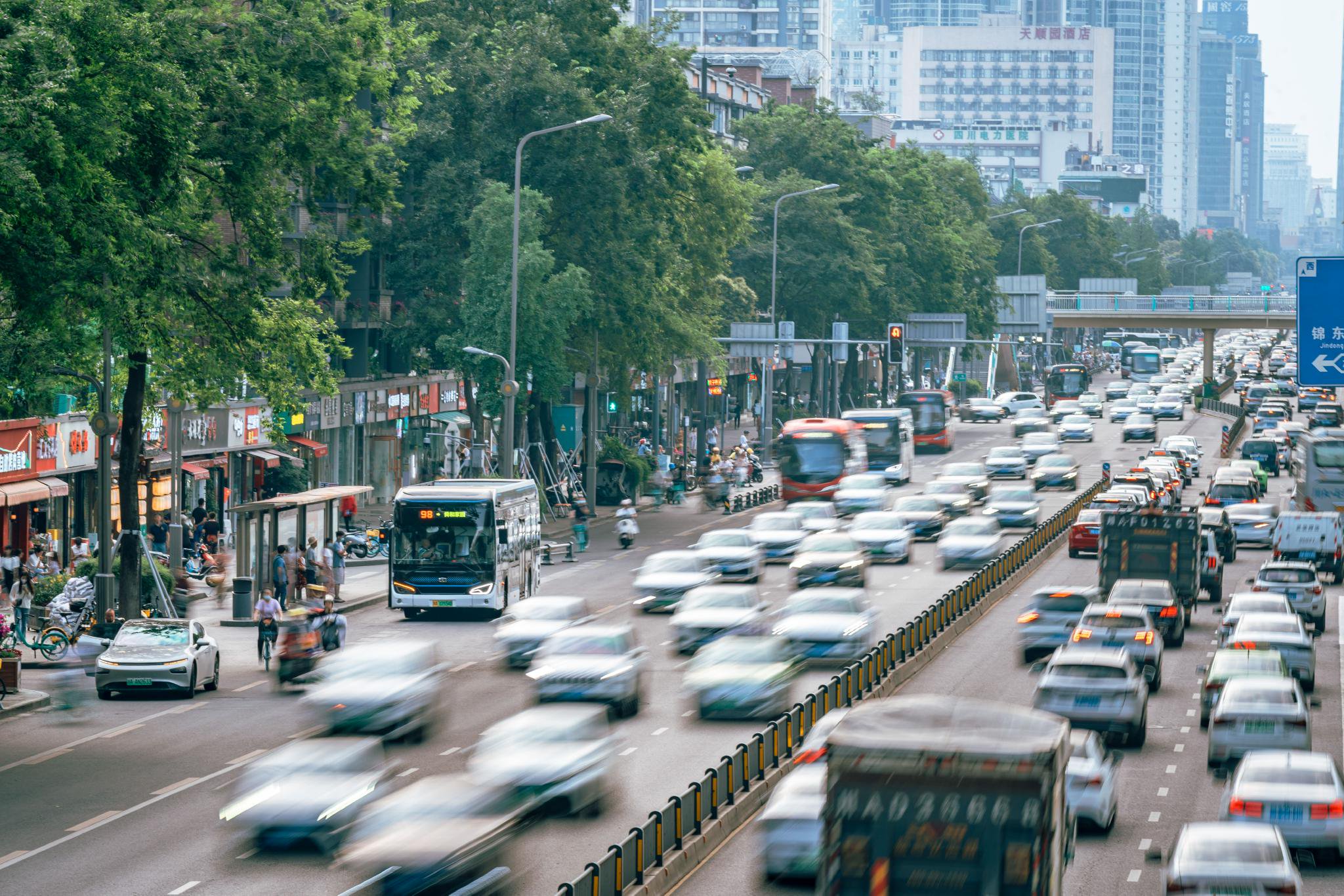 ▲成都街头行驶的公交车五年来,瞄准市民出行体验,成都从微末之间入手,用千万人的脚步,踏出了“成都式幸福”。
