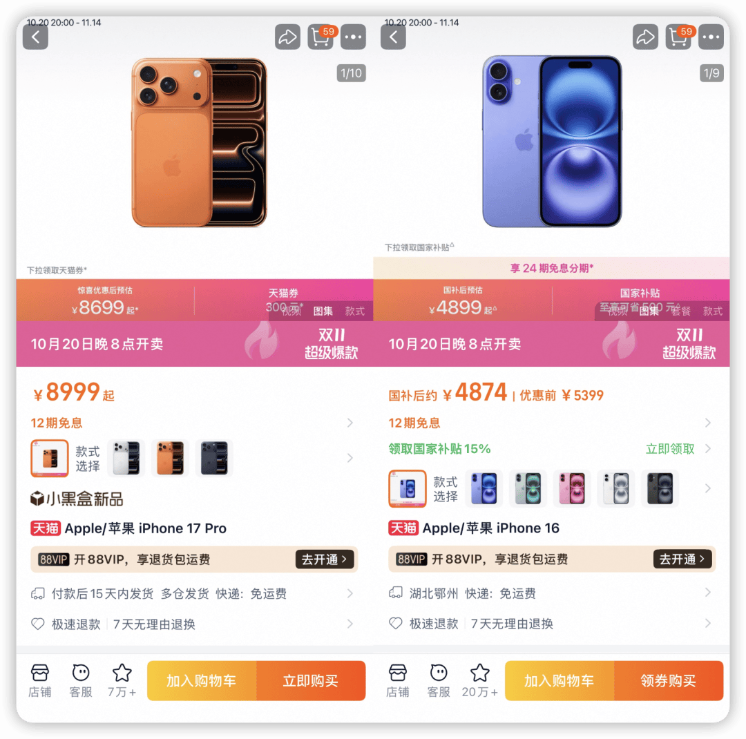 不得不说,相较于其他电商平台,天猫旗舰店的这波降价幅度确实很「苹果」。