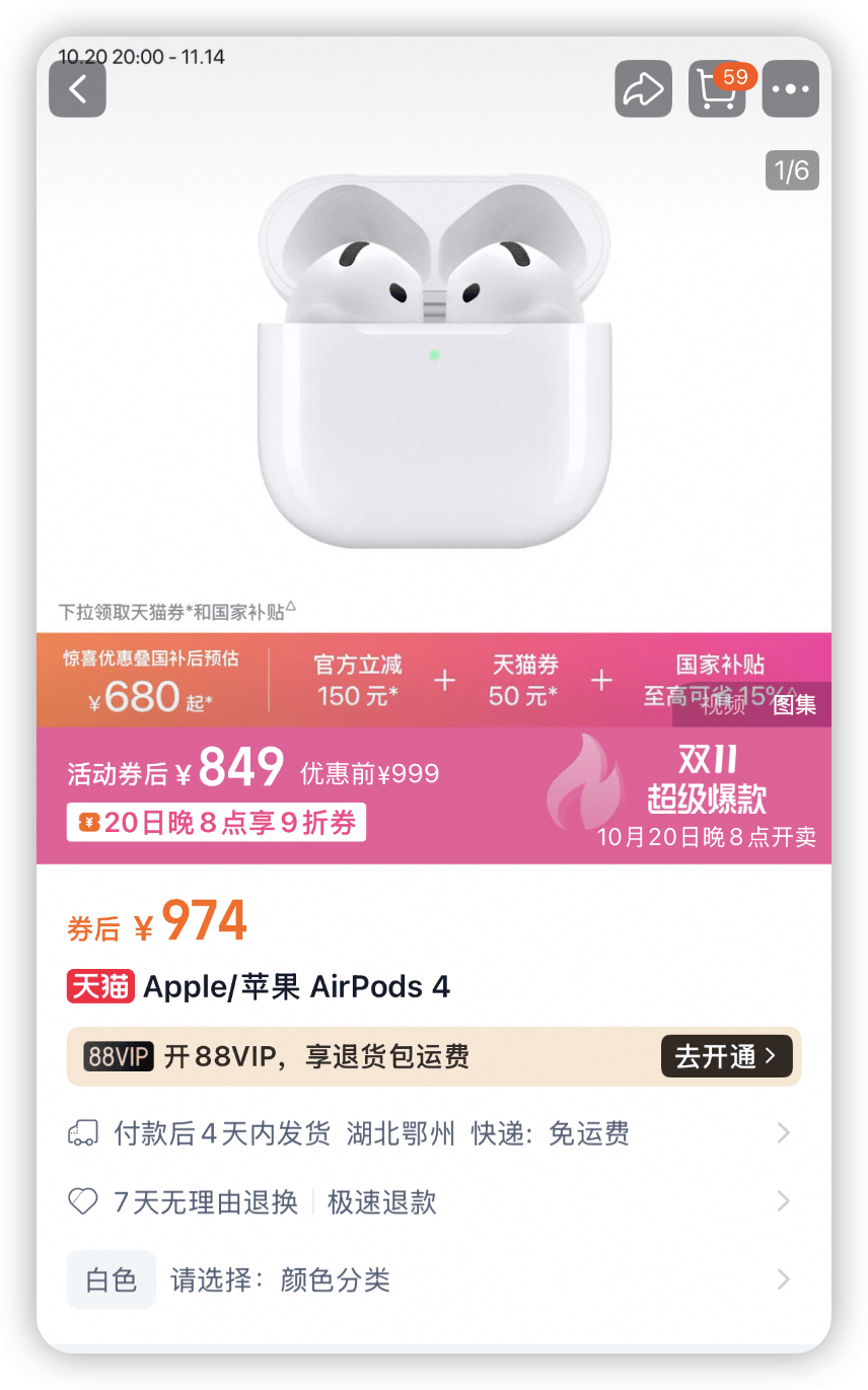 以 AirPods 4 基础款为例,优惠全部拉满后,最低能以 680 元的价格入手。