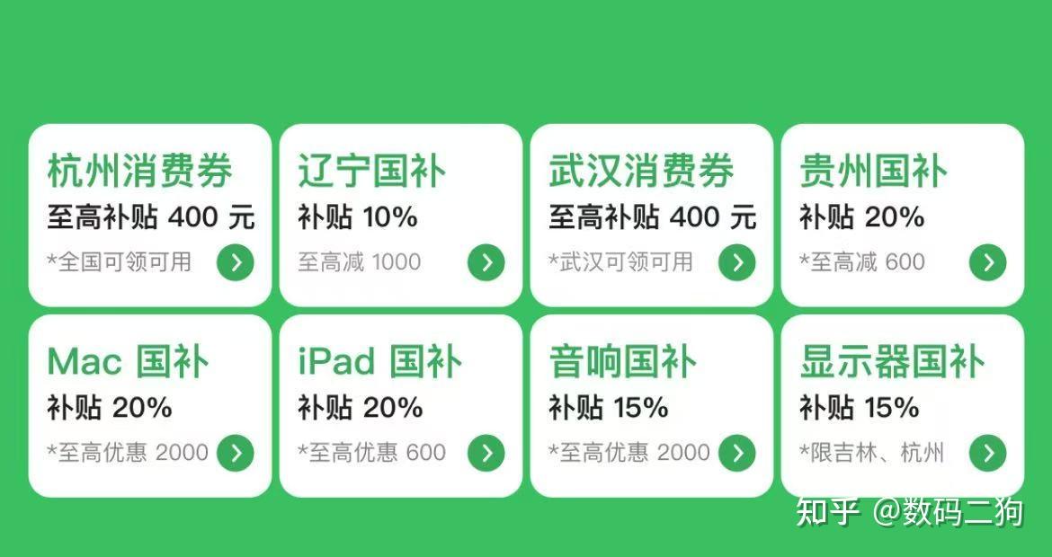 目前苹果手机参加国补,可以享受各地区消费券。杭州消费券至高补贴400元,全国可领可用;辽宁国补补帖10%,至高减1000元;武汉消费券至高补贴400元,武汉地区可领可用,贵州国补补贴20%,至高减600元。点击下面卡片进入活动页领取。